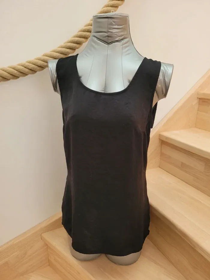 Débardeur pour femme de la marque Camaieu et de taille 38 A larges bretelles Tissu noir imitation satin Étiquette coupée mais il s'agit d'une taille 38 Aucune tâche ni trou #mabi38780femme38 #mabi38780femmeM