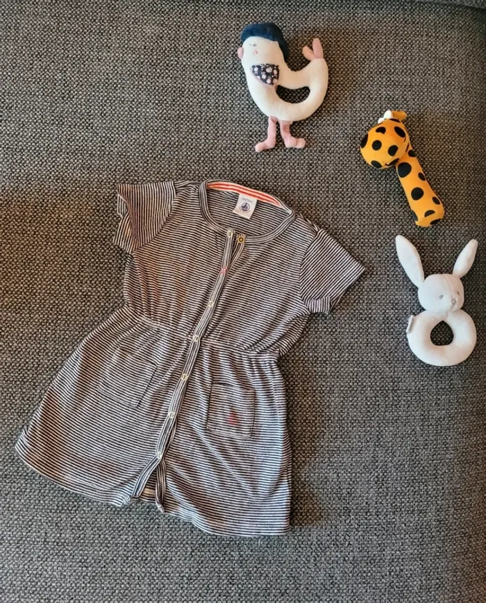 Robe pour fille de la marque Petit Bateau et de taille 12 mois A manches courtes et en coton Iconique motif marinière avec logo Aucune tâche ni trou #mabi38780fille12mois