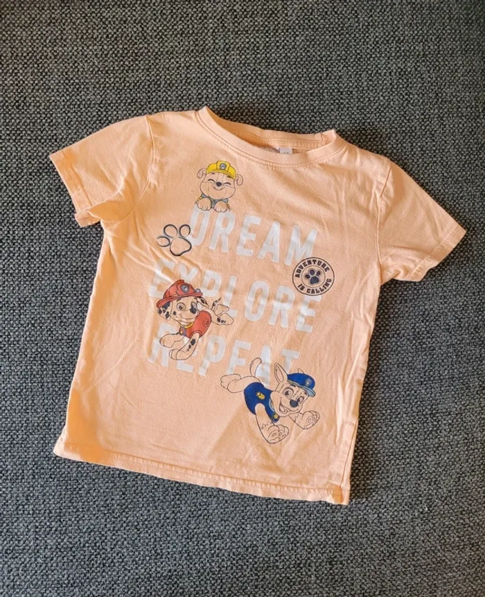 T-shirt Pat'Patrouille de taille 5 ans En coton à manches courtes Mixte, unisexe Thème Ruben, Marcus et Chase Aucune tâche ni trou. Les dessins ont légèrement craqué aux lavages #mabi38780fille5ans #mabi38780mixte5ans #mabi38780patpatrouille