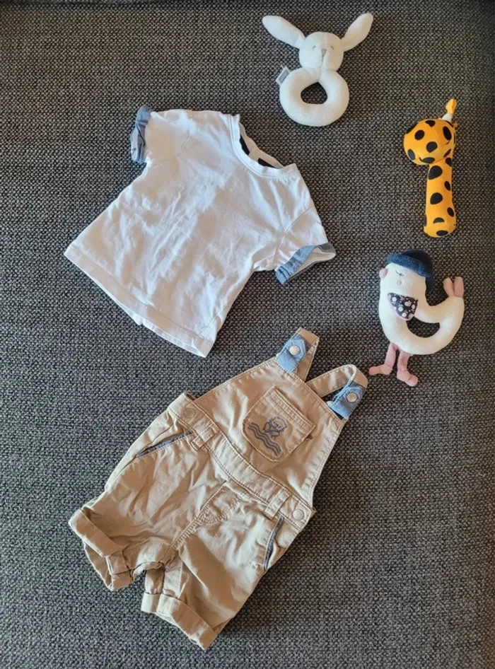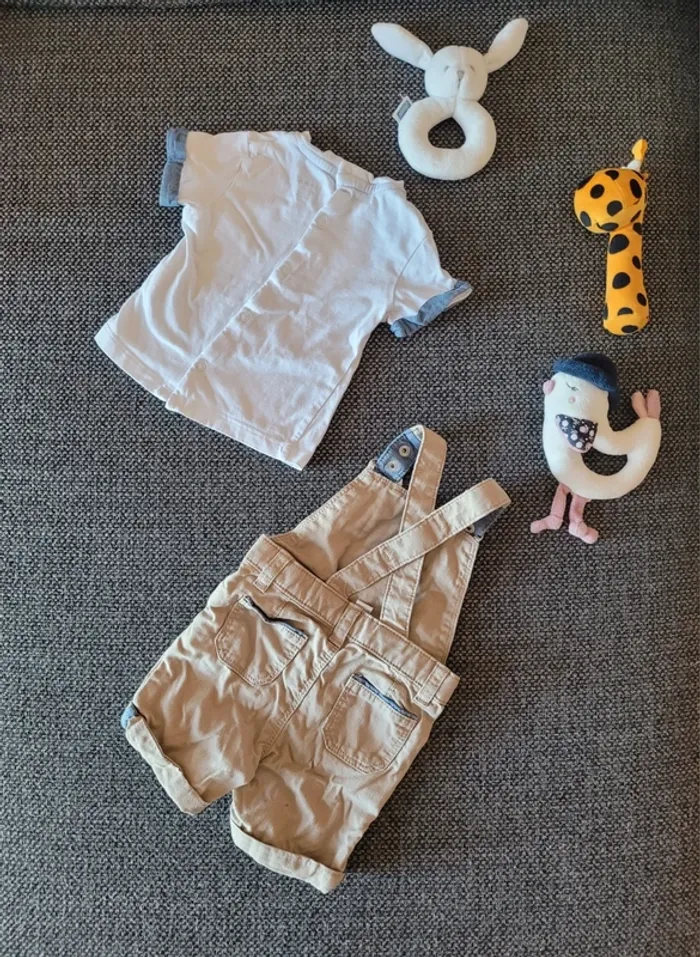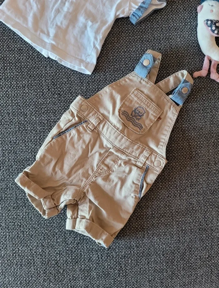 Ensemble salopette short + t-shirt garçon 3 mois - photo numéro 1