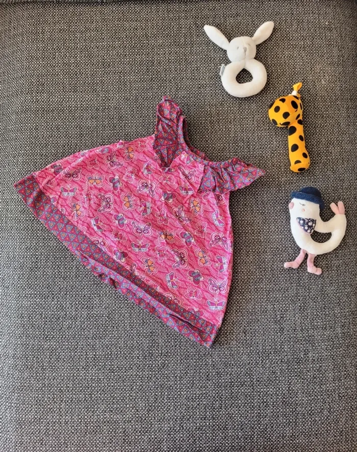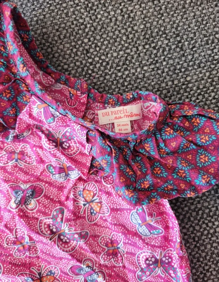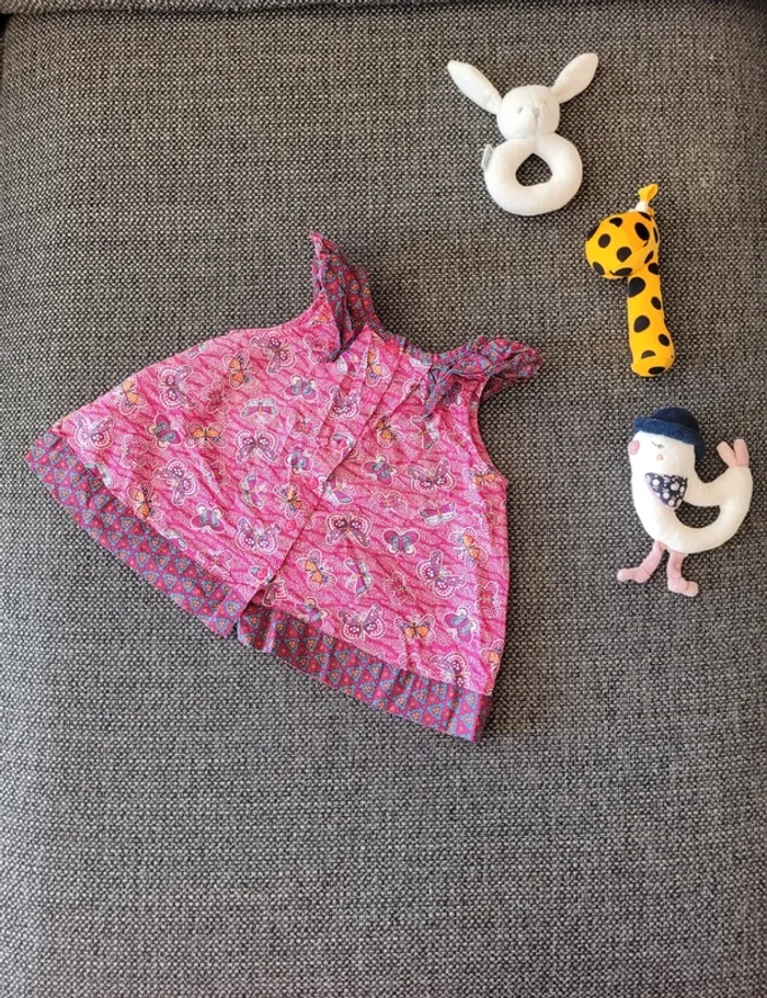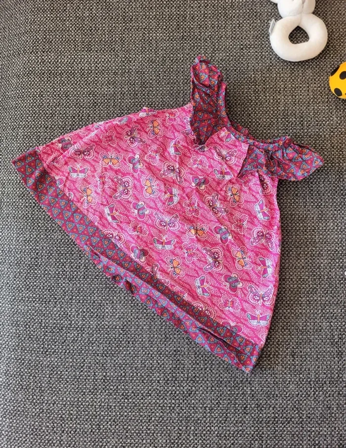 Tunique pour fille de taille 24 mois et de la marque Du Pareil Au Même (DPAM) Sans manche 100% coton, idéale pour l'été Bretelles à froufrous/volants Motifs papillons Aucune tâche ni trou #mabi38780fille24mois