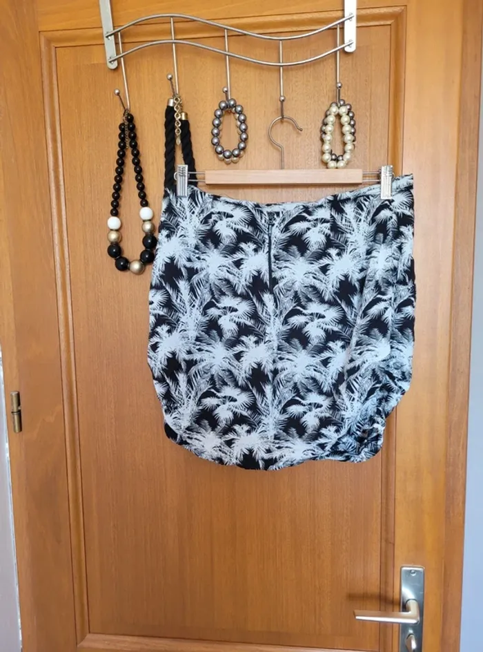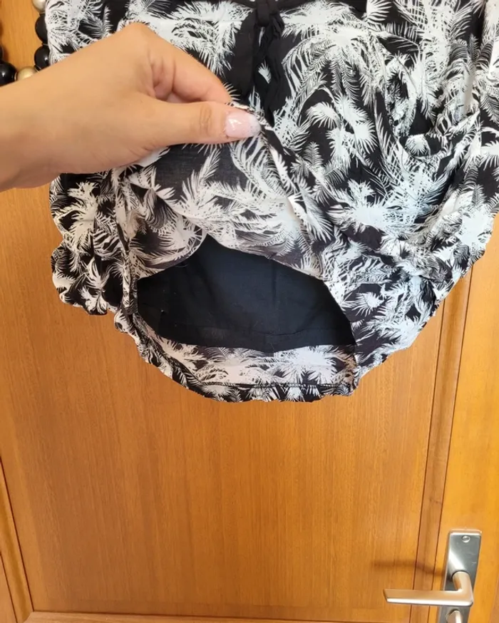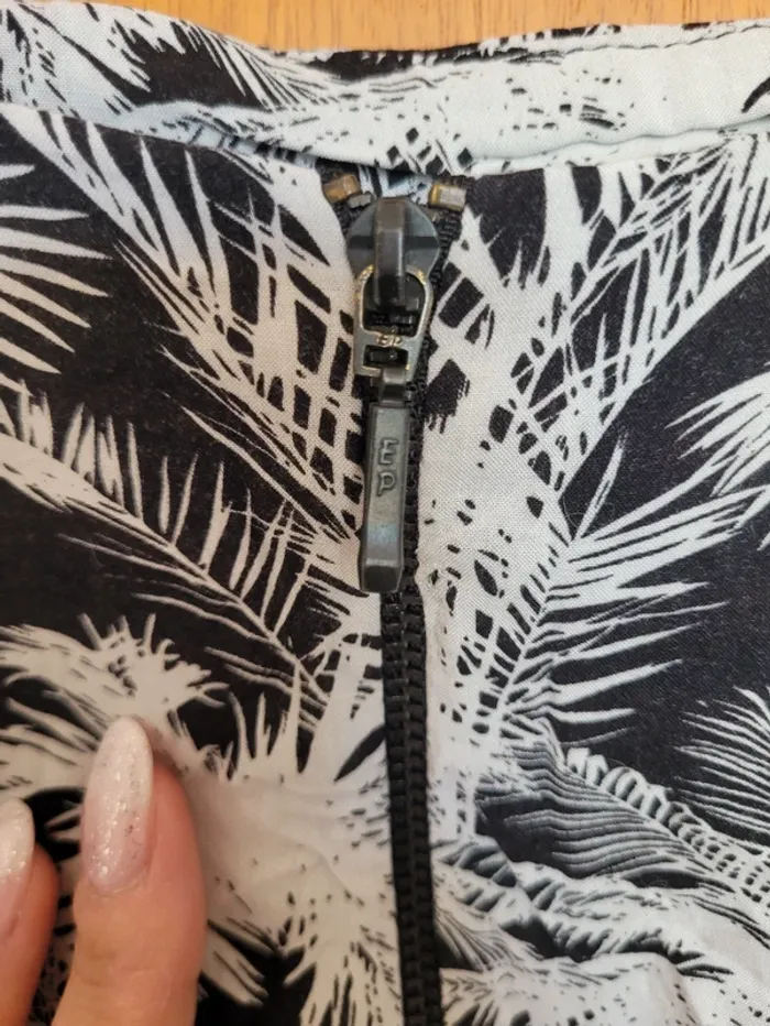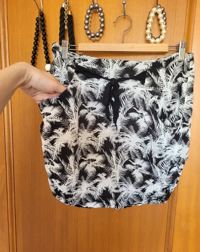 Jupe pour femme de taille 40 et de la marque Cache-cache Forme boule avec 2 poches à l'avant Laçage décoratif pour faire une ceinture Tissu en viscose à motif tropical avec palmiers Légère, idéale pour les beaux jours Aucune tâche ni trou. Juste un accroc au niveau de la fermeture éclair (voir photo) #mabi38780femme40 #mabi38780femmeL