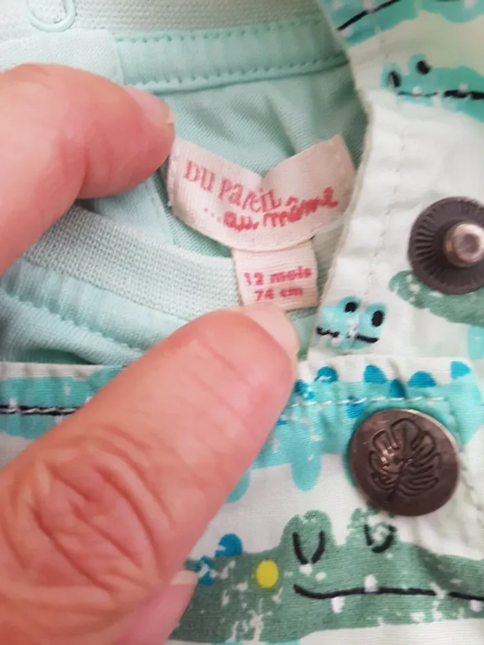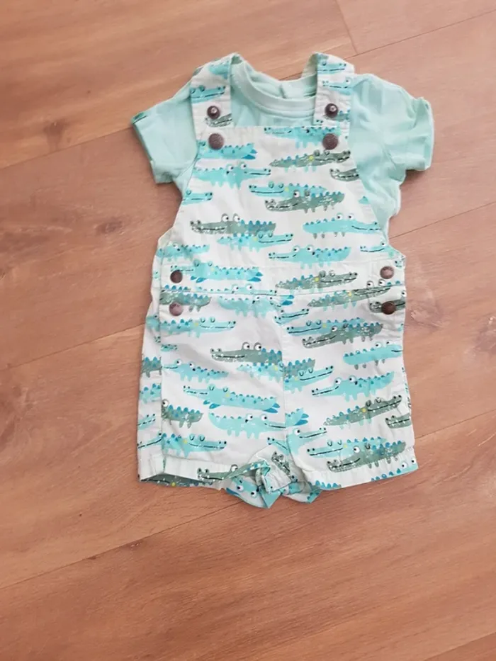 Ensemble Du Pareil Au Même taille 12 mois 74 cm comprenant un t-shirt et une salopette short motif crocodile!