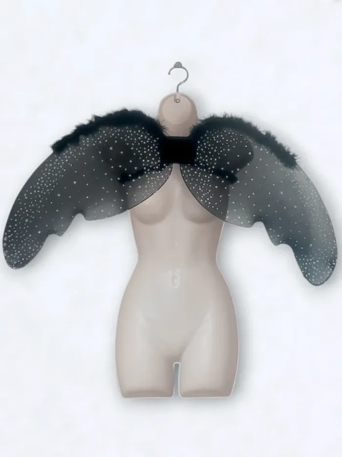 Ailes ange noir paillette strass argent - Adulte