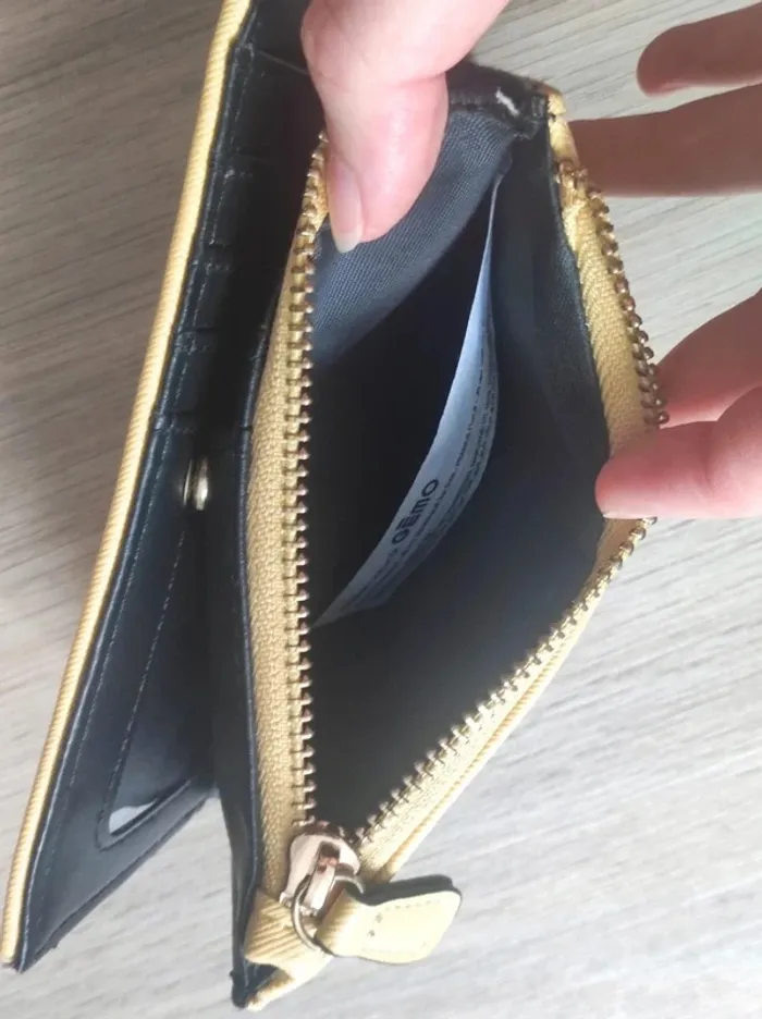 Portefeuille jaune moutarde noir similicuir /Gémo - 15x9,5cm - photo numéro 5
