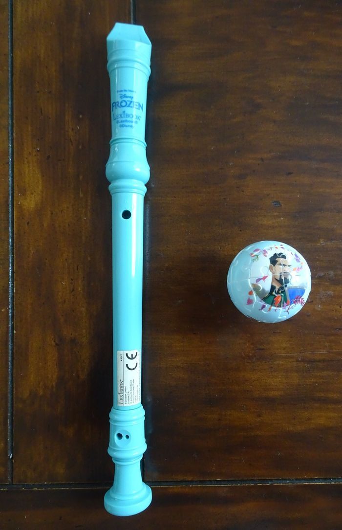 Lot de la Reine des neiges comprenant: - Une flûte bleue de la Reine des Neiges pour enfant de la marque LEXIBOOK. Fonctionne parfaitement, en bon état général. - Un Mini Puzzle Ball de la Reine des Neiges. Se pose sur son socle. 24 pièces.