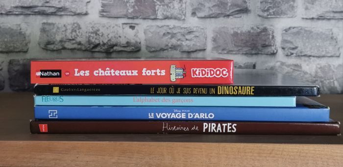 Kididoc Les châteaux forts Edition Nathan Comme Neuf A partir de 5 ans Prix éditeur : 13,95 € L'alphabet des garçons Edition Fleurus Très bon état Le coloriage en cadeau n'est plus présent dans le livre Le voyage d'Arlo (vendu) Histoires de pirates écrites par Gudule Edition Milan Jeunesse Bon état Prix éditeur : 13 € Mes p'tits docs Les dinosaures Edition Milan Jeunesse Prix éditeur : 7,60 € A partir de 3 ans Bon état Le jour où je suis devenu un dinosaure Antoine Guilloppé Livre offert pour l'achat du lot Ancien livre de bibliothèque Bon état