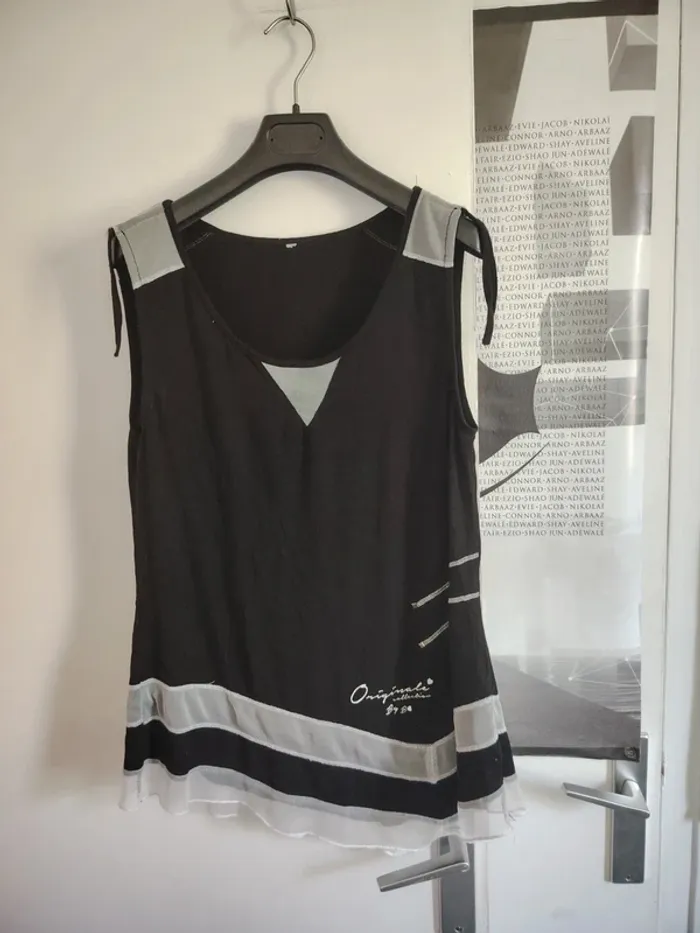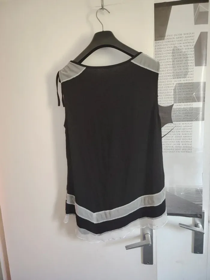 #meganeayronquarante Débardeur noir et blanc marque blanche porte taille 40 Etiquete de taille coupe Aisselle à aisselle 50cm