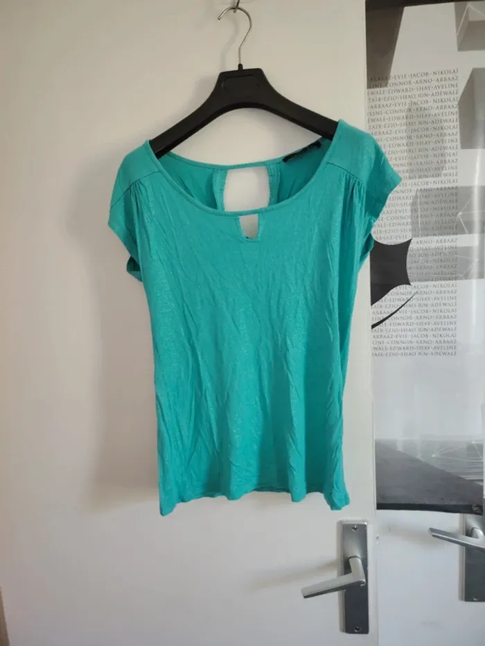 #meganeayrontrentesix Blouse manche courte bleu à paillettes marque Lola & Liza taille S Note XS mais taille S
