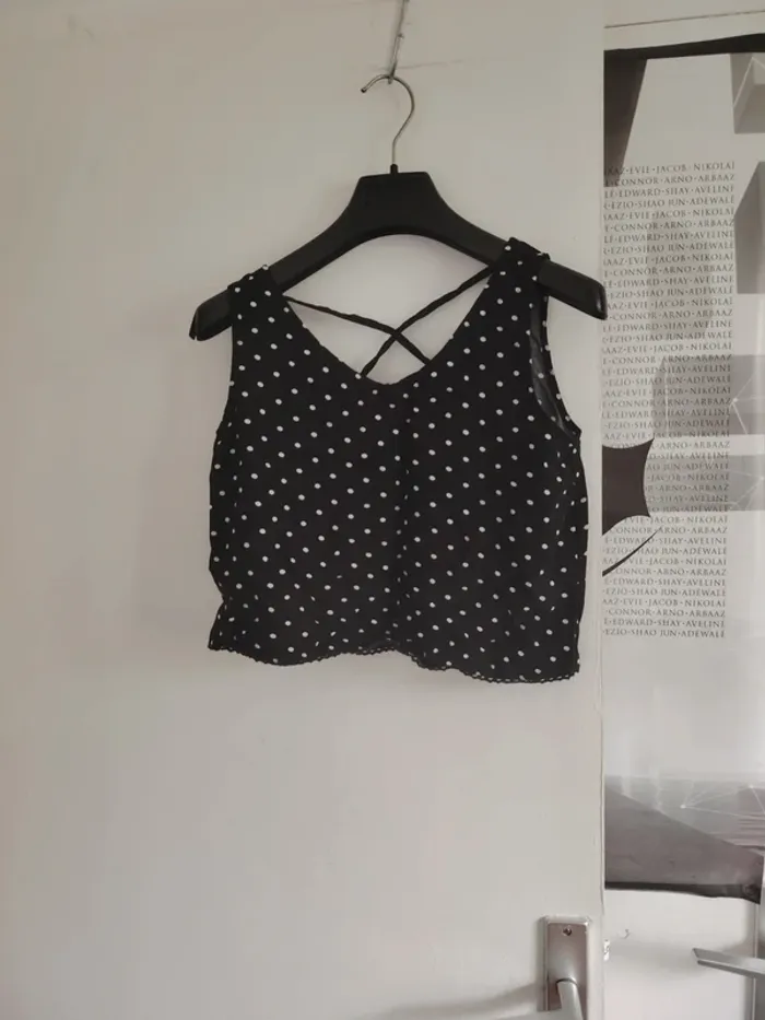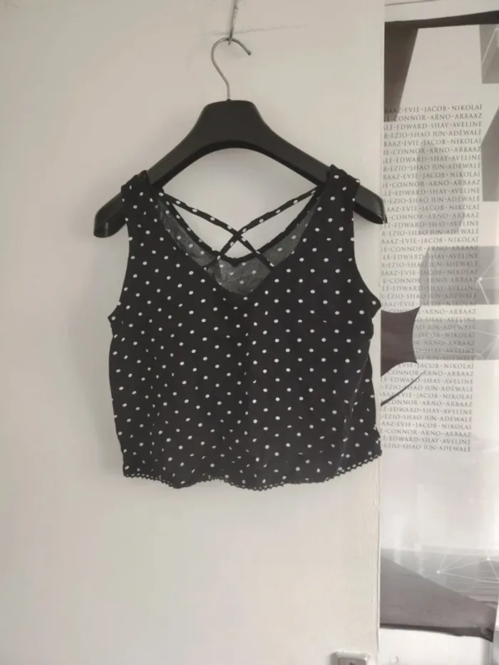 #meganeayronfilledouze #meganeayrontrentedeux Crop top noir a pois blanc marque kiabi taille 12 ans