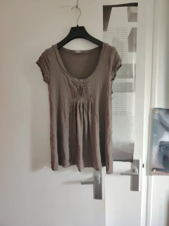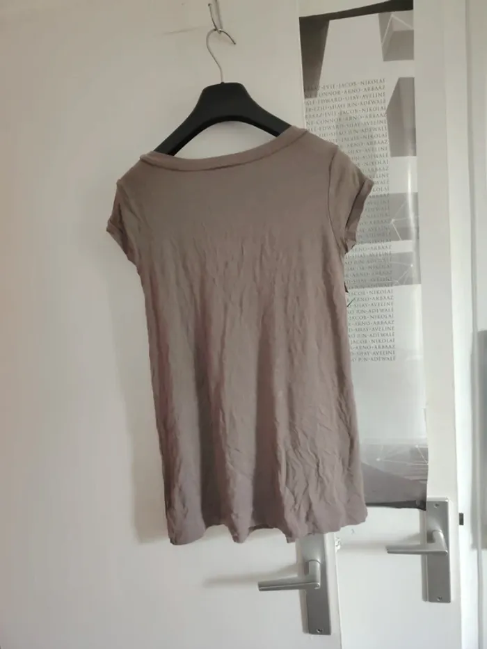 #meganeayrontrentesix Blouse manche courte taupe marque camaïeu taille 1