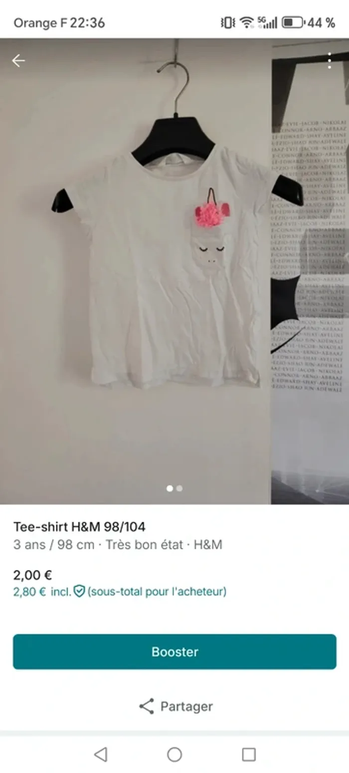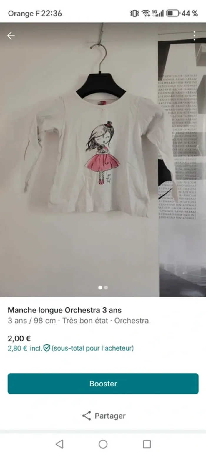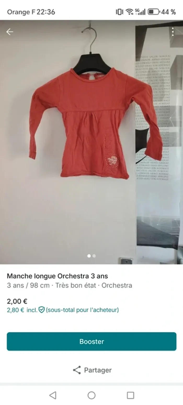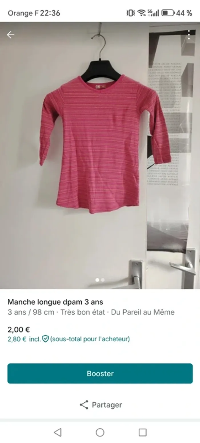 Lot de 3 ans Composé de 1 tee-shirt H&M 1 sous pull dpam rose 1 Orchestra blanc 1 orchestra corail