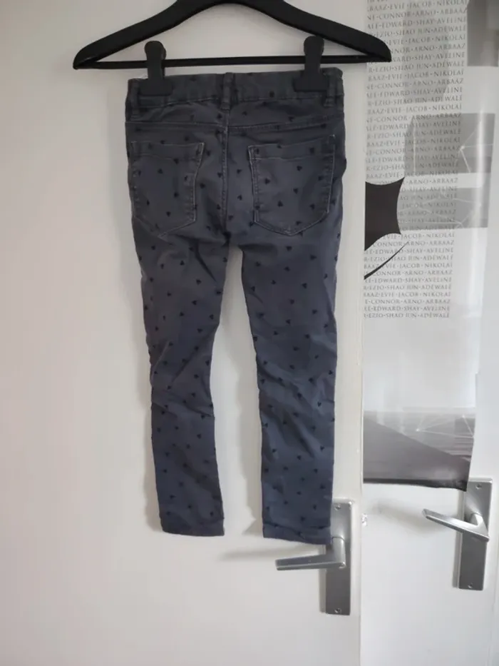 #meganeayronfillesept Jean gris motif cœur noir marque dopodopo taille 122cm