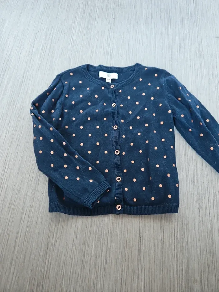 Gilet bleu marine a pois rose gold 4 ans #tresorfille4ans