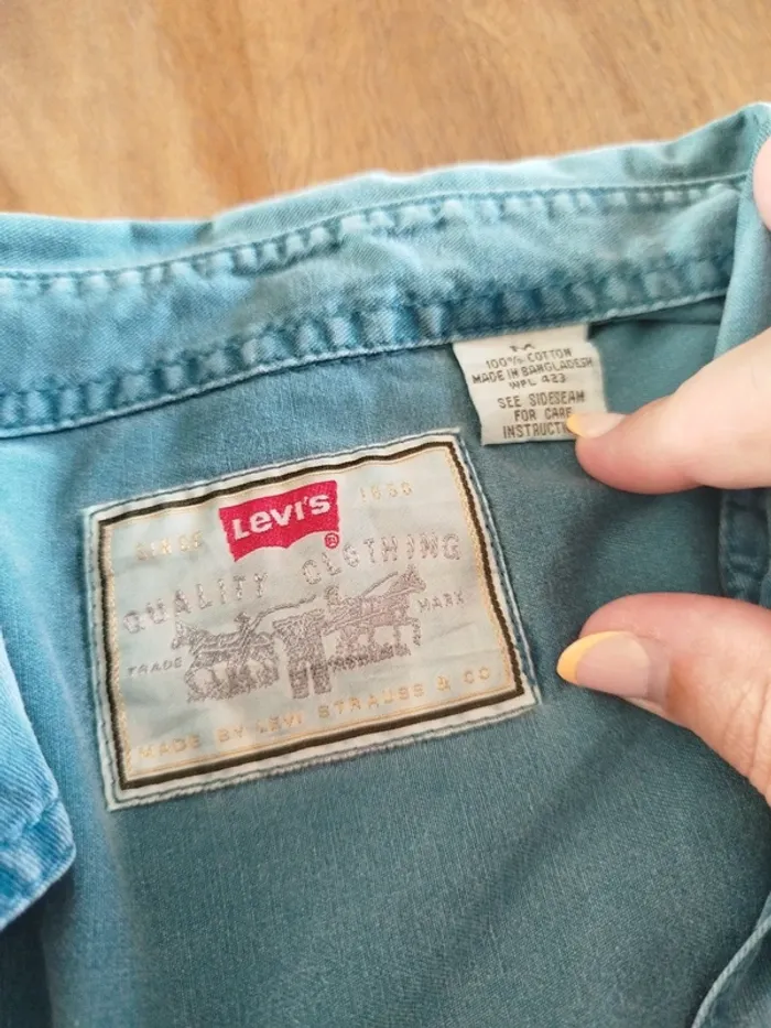 Chemise homme Levi's taille M 100% coton , couleur bleu canard , manque 3 boutons . Pas de trou . N'hésitez pas a regarder mes autres ventes pour faire des lots . #chemiselevis #chemiselevishomme