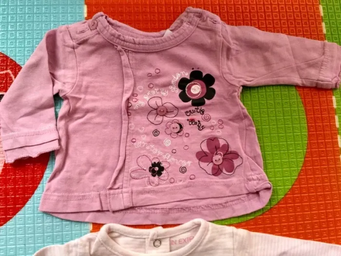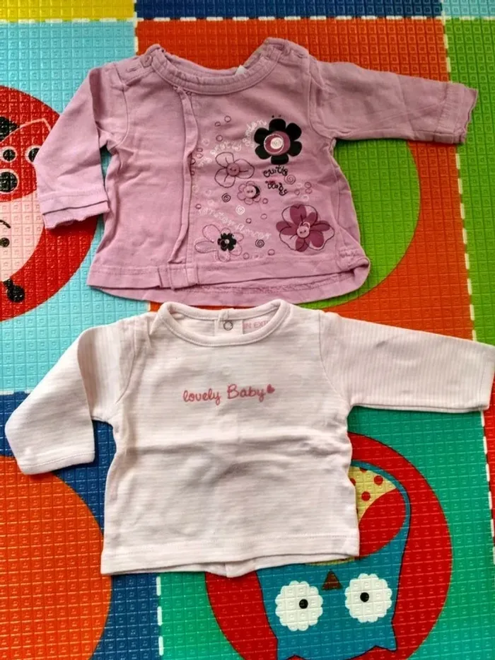2 hauts à manches longues en très bon état, taille 1 mois/56 cm. - haut rayé rose et blanc, In extenso, ouverture par pressions dans le dos - haut rose à fleurs. Pas d'envois pour cet article seul, merci. Tout mon 1 mois fille ici #bse92Fille1mois Retrouvez les liens vers mes autres catégories dans la présentation de mon dressing !