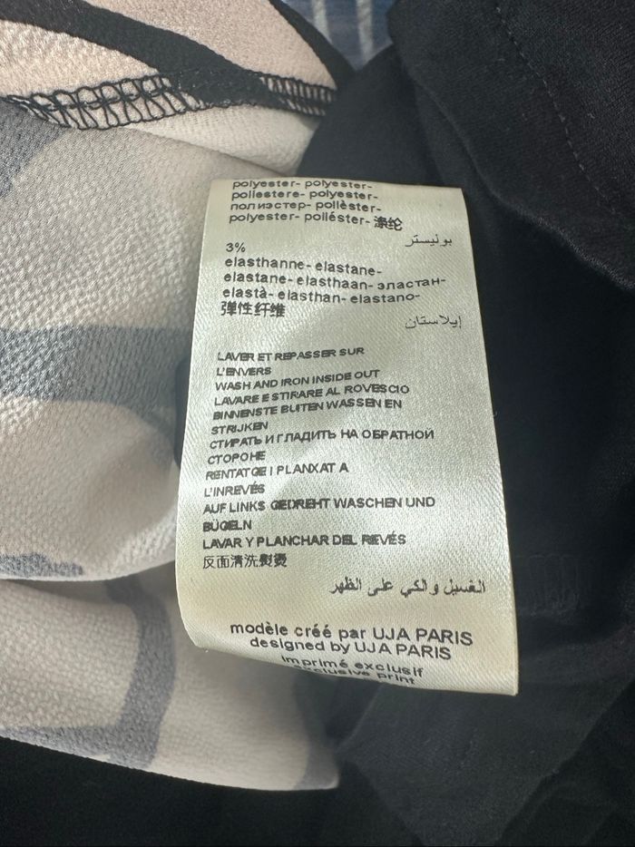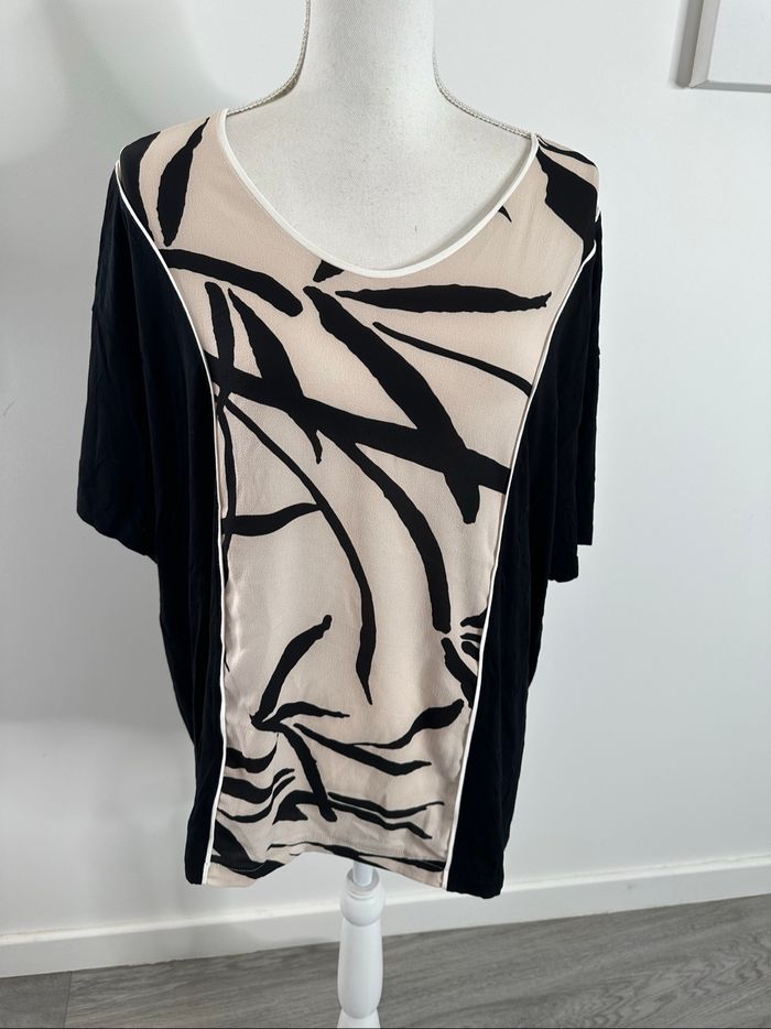 Blouse bariolée - Excellent état - Taille 5 équivalent 44 XXL Dimensions en bas de l’annonce (ok du 44 au 50) - Un jour ailleurs, UJA - Beige crème et noire - Coupe oversize - Manches courtes - Viscose, élastane et polyester Dimensions: - 66cm niveau aisselles - 70cm de long
