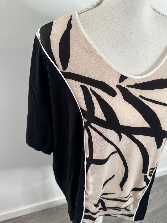 Blouse oversize bariolée beige crème et noire Un jour ailleurs UJA T5 44 XXL - photo numéro 2