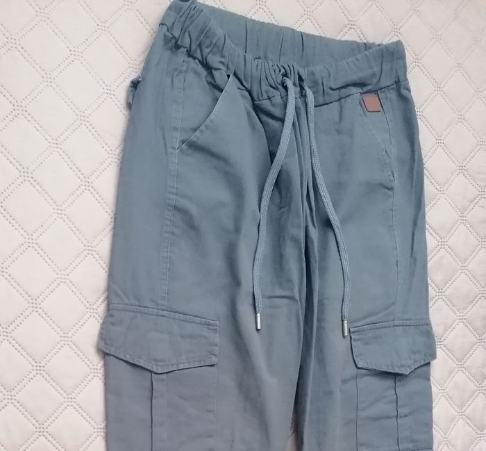 Pantalon homme, taille 42. Gris (photos mal prise). 2 poches sur les côtés et 2 derrière. 2 niveaux cuisse. Bas des jambe élastique, taille élastique Un fil pour serré. Porté. 5€