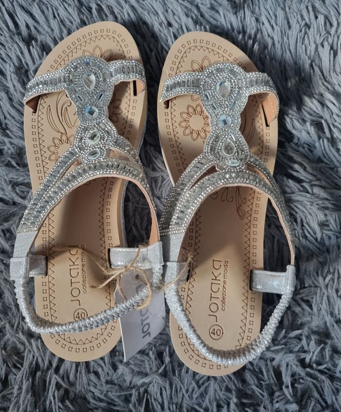 Sandales à strass argenté neuf - photo numéro 1
