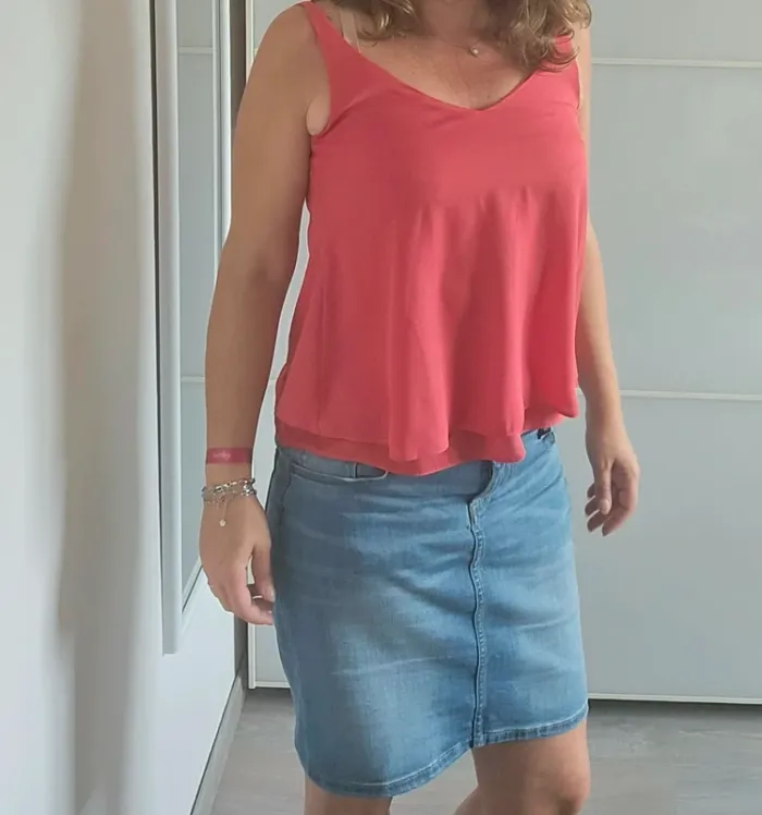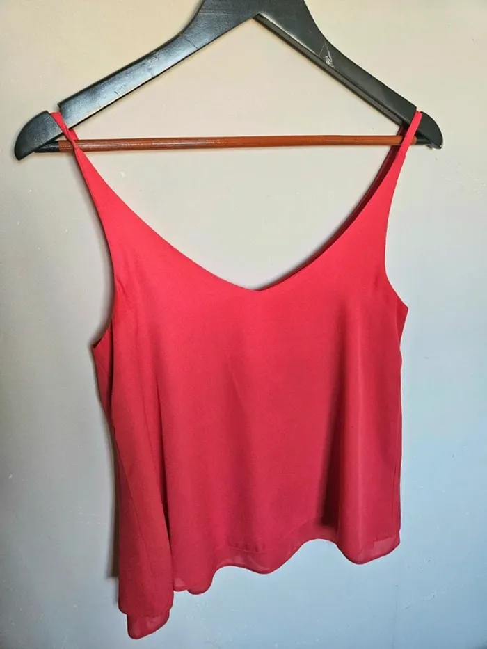 📌Lot 20% de remise dès 5 articles Débardeur fine bretelle, couleur corail, voile superposé ➡️Largeur à plat sous les bras 43 cm➡️ Longueur 53  cm ➡️100% polyester ⭐Excellent état ✈Envoi rapide des colis 💗 Abonnez vous à mon profil, nombreux articles ajoutés régulièrement ! #laetitresors_debardeur36 #laetitresors #debardeur #corail #bretelle #top #etam #fluide #voile