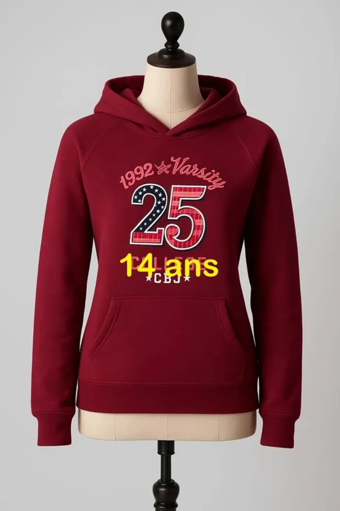 Sweat avec capuche bordeaux imprimé multicolore Bilook Taille 14 ans #sycaro35 #sycaro3514ans #taille14ans #sweat #capuche #bordeaux #multicolore #bilook B4763