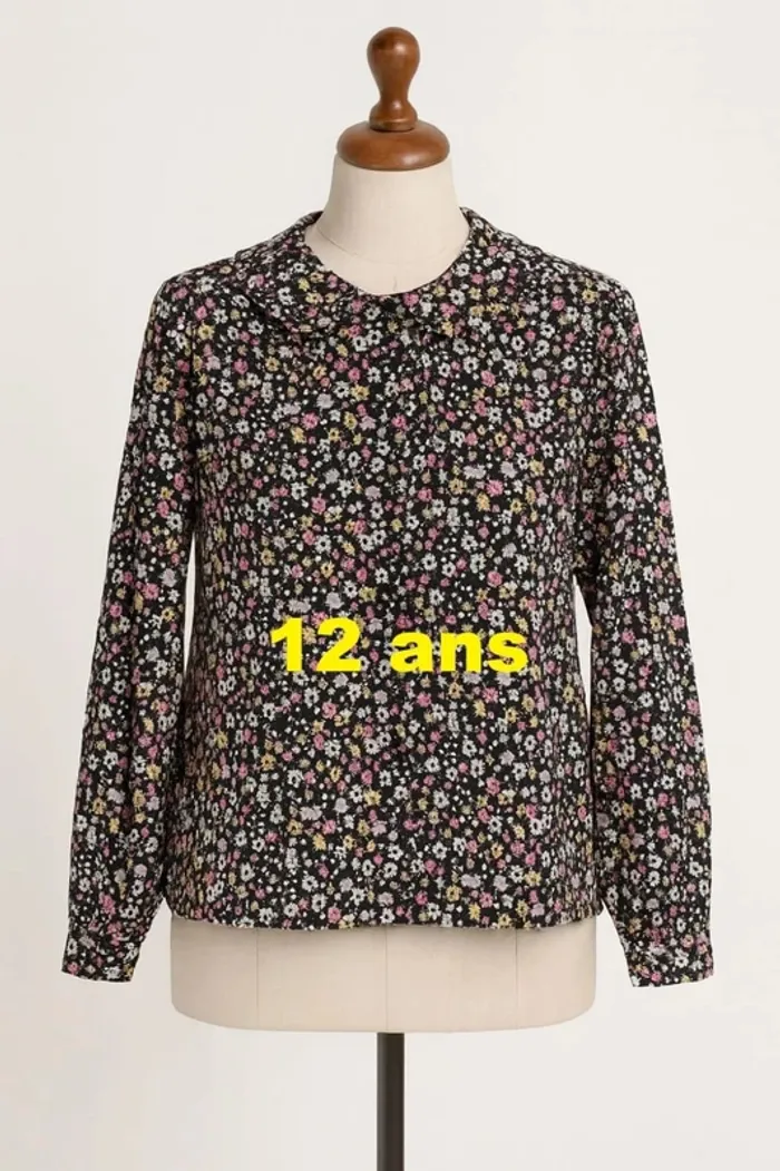 Chemisier manche longue noir motif floral multicolore Fashion Private Company Taille 12 ans - photo numéro 1