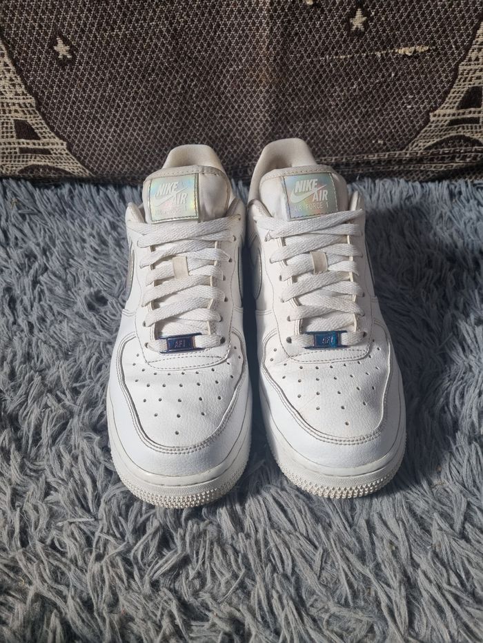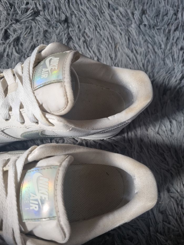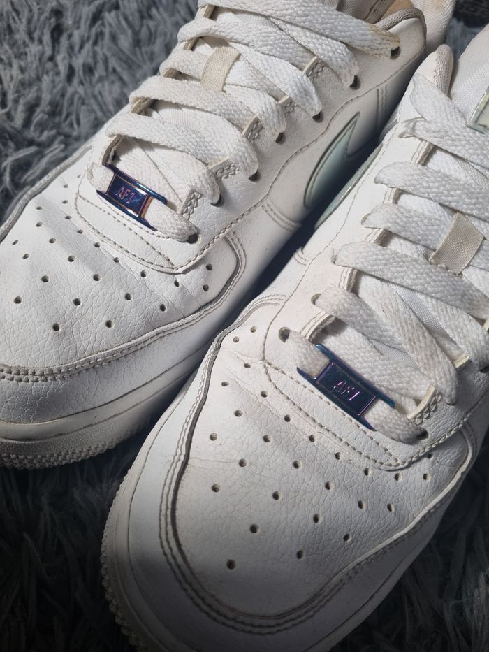 Basket Nike Air Force 1 Low Blanc Irisdescent pointure 40 ,peu porté 2-3fois, un peu jaunis à l'intérieur mais sinon elle sont nickel, acheté 464€ .