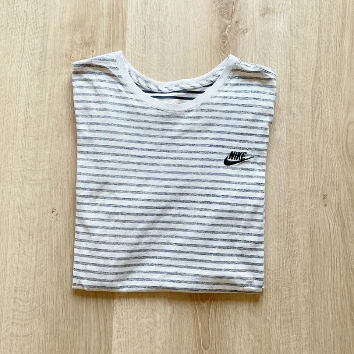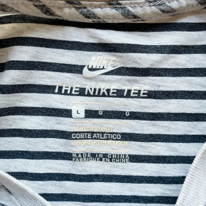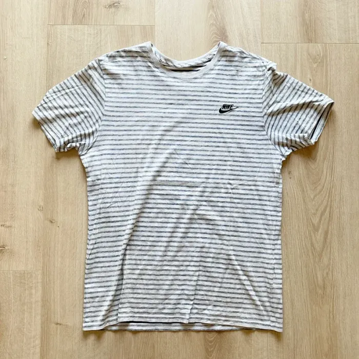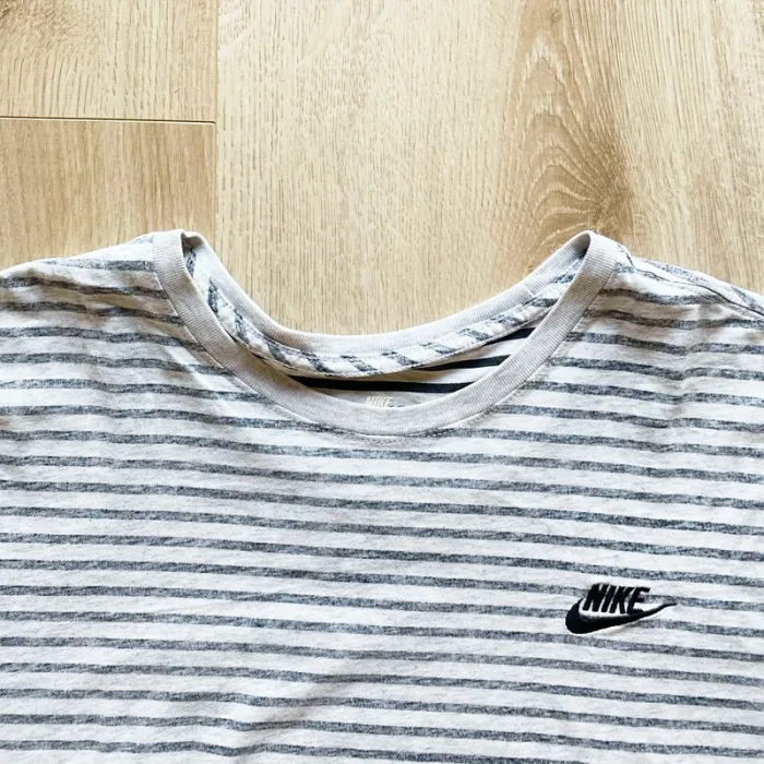 Nike The Tee T-shirt à rayures Gris et Blanc Homme Exclusif Sportwear Collection (Taille L)
