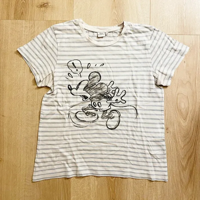Disney Classic T-shirt Marinière Vintage Mickey Mouse Femme Bleu Ciel Exclusif Collection (Taille M)