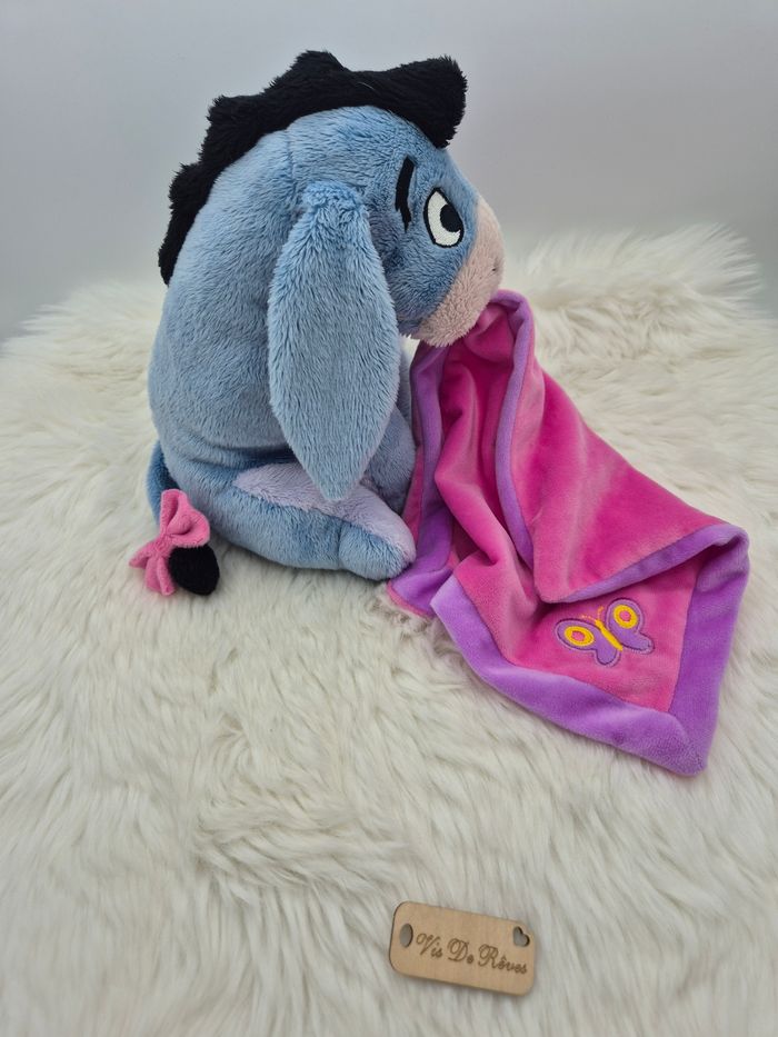 Doudou mouchoir Peluche Bourriquet rose fleur papillon Disney Nicotoy - photo numéro 2