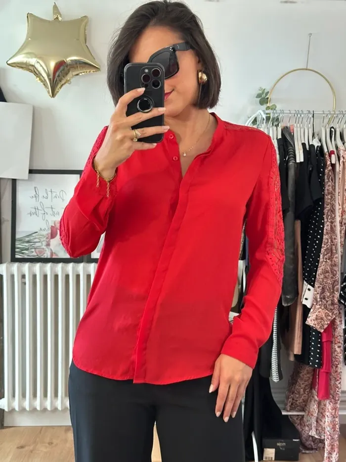 Blouse The Kooples rouge taille 36. Jolis détails en dentelles sur les manches. Elle est en très bon état. #thekooples #thekooples36 #blousethekooples36