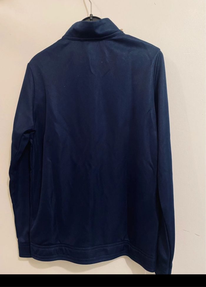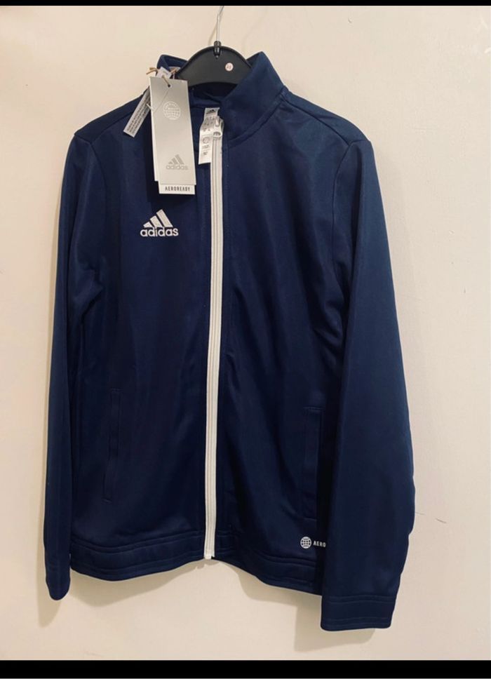 🧥 Veste de jogging Adidas, idéale pour un look sport ou casual. 📏 Taille : 9/10 ans ⚪ Couleur : bleu marine 🏷️ Logo : Adidas sur la poitrine 🔒 Fermeture zippée, col montant 🔖 Neuf avec étiquette