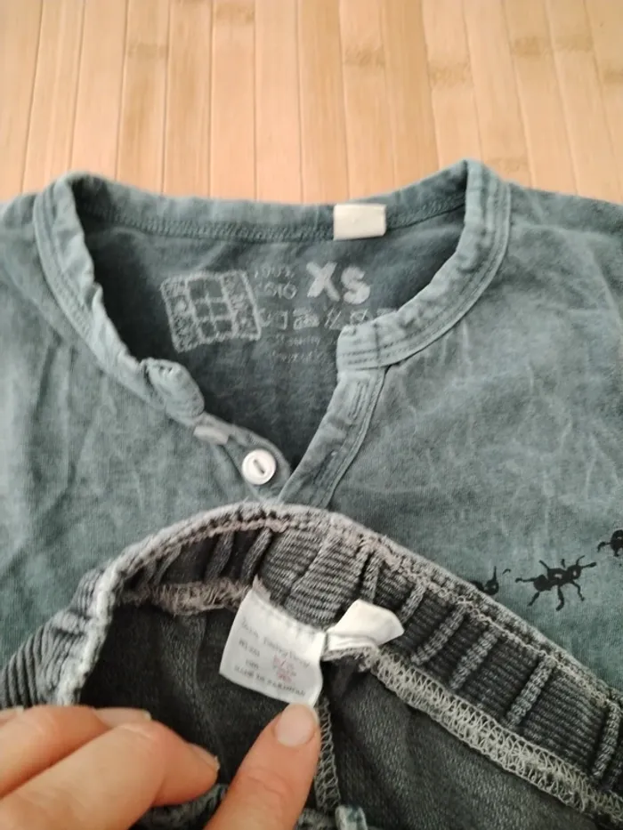Ensemble gris effet délavé short zara côtelé (à recoudre sur l'arrière au niveau de la ceinture, cf photo) et tee-shirt avec motif de fourmis🐜 qui se suivent