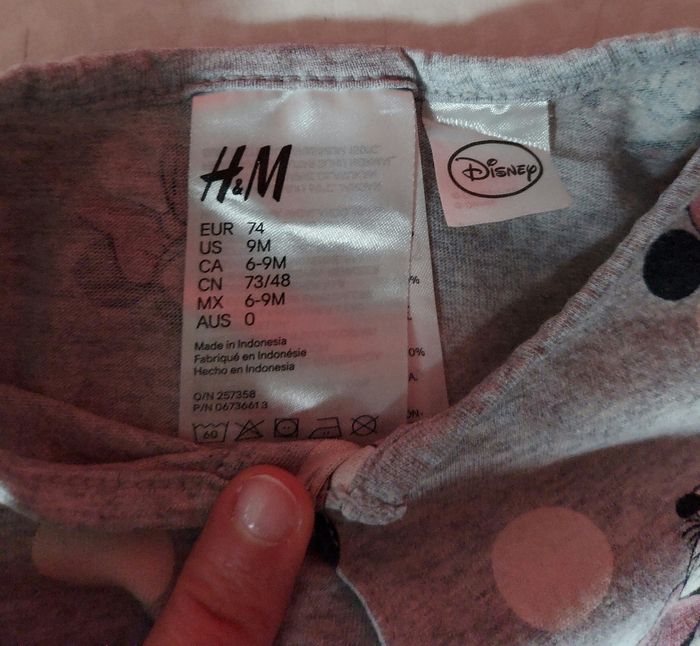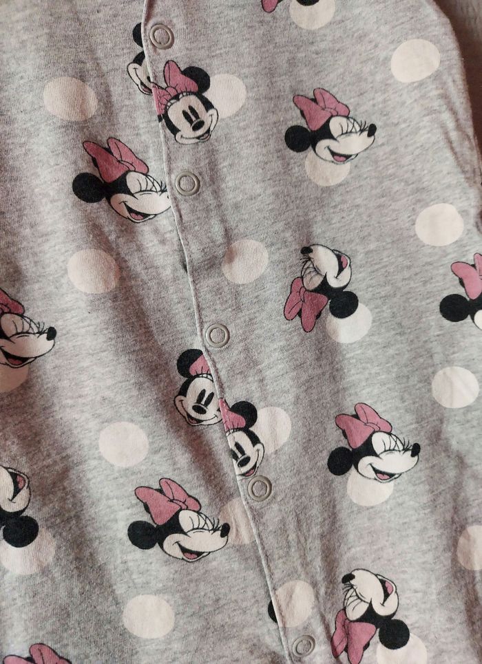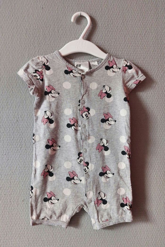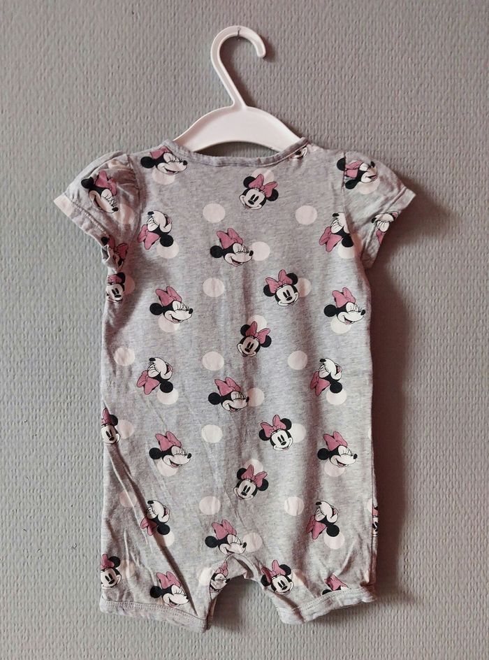 Je vends un pyjashort à courtes manches de couleur gris avec des gros points blanc et des figures de Minnie venant de chez H&M. Il possède des boutons à pression allant du cou à ma jambe gauche. Taille : 74 cm (9 mois) . En très bon état.