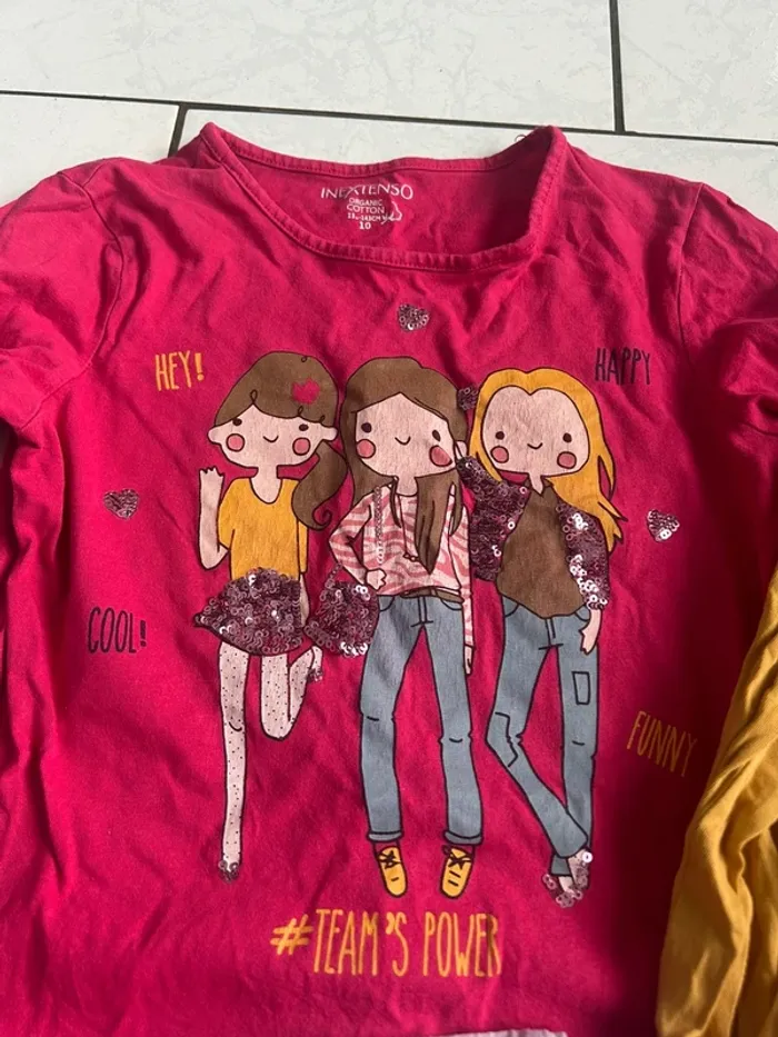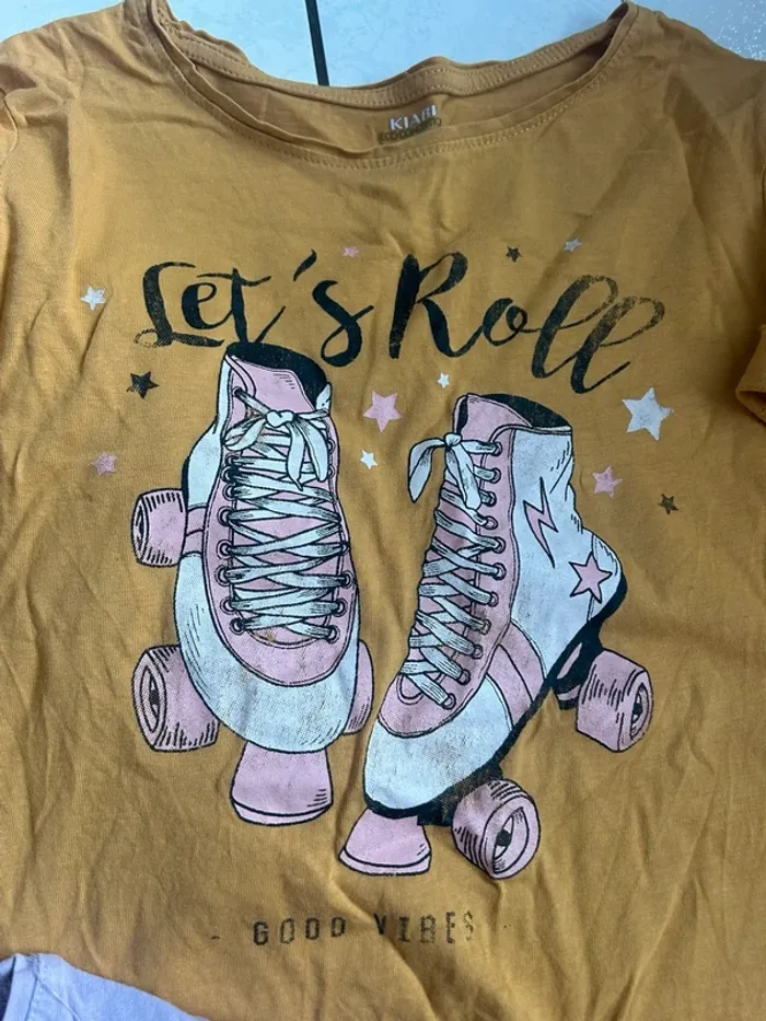 Lot de 3 tee shirts manches longues Dessin effet effacé sur les rollers ( TEE shirt jaune ) mais dessin naturel Légèrement strié sur les visages des filles 10 ans #10ansfillechoupi59300