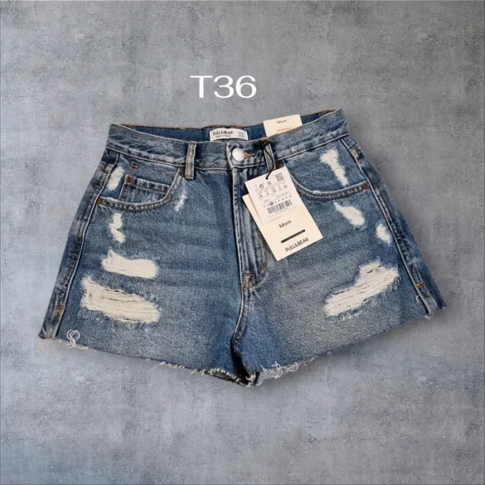 Pull & Bear Short en jean déchiré Taille 36 Neuf avec étiquette Short en jean avec ourlet effiloché et détails déchirés, cinq poches, passants de ceinture, fermeture Éclair et bouton 100 % coton #shortjean36 #pullandbear #shortjeandechire ADN.265