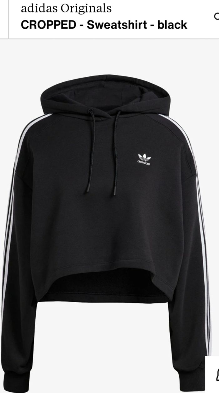 Je vends ce cropped sweatshirt Adidas noir pour fille/femme Taille 36/s , très peu porté, pratiquement neuf Envoi rapide