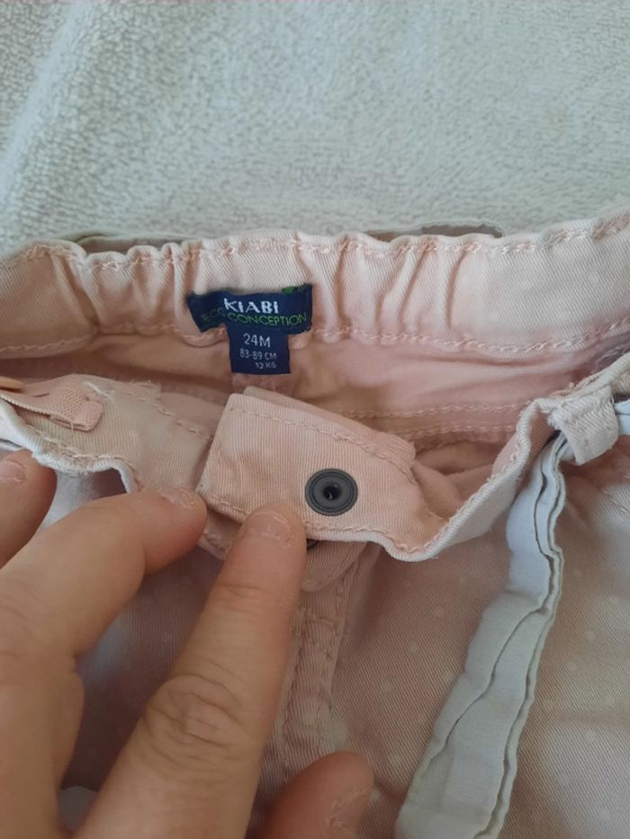 Pantalon fille 24 mois kiabi rose. Légèrement délavé et une micro tâche qui se voit à peine voir photos