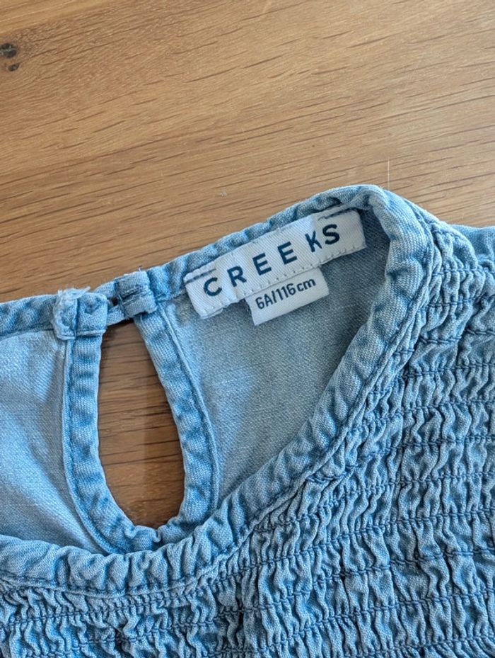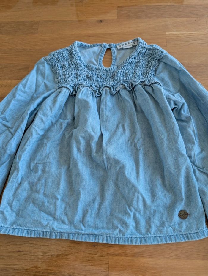 Blouse en jean taille 6 ans marque Creeks très bon état sauf une petite tâche dans le dos voir photos
