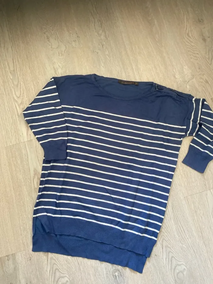 Pull fin marinière emoi taille L Manches 3/4 Coupe large Largeur aisselles 54 cm Longueur avant 62 cm ( + 6 cm)