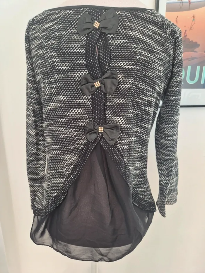 Tshirt manches 3/4 noir et blanc de la marque Made in Italy Petite ouverture avec voilure dans le dos Pas de taille de notée #celinefeu_tshirt