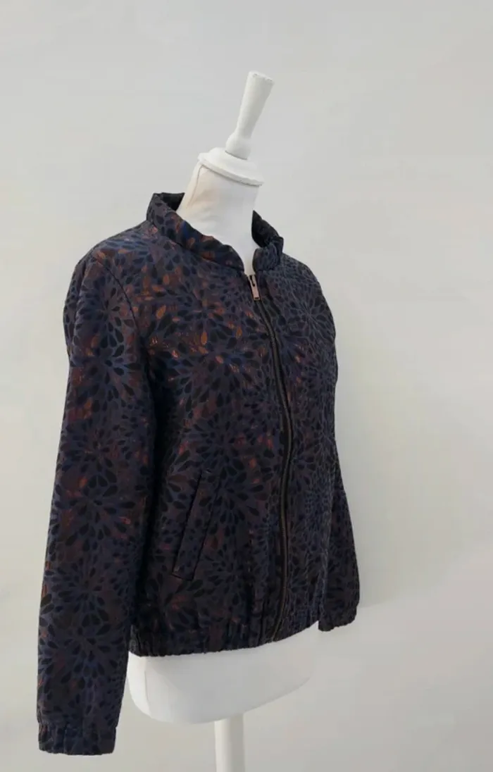 Blouson teddy zippé à motifs violet et doré taille S - photo numéro 1
