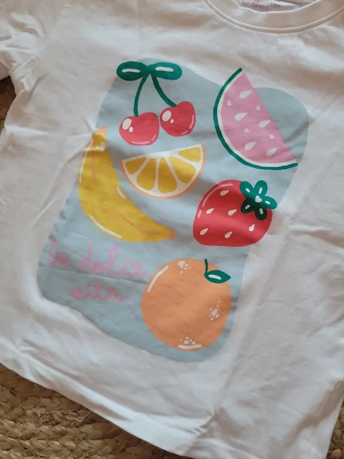 T-shirt dolce vita- neuf juste lavé Taille 5-6 ans #lucette5ans #lucette6ans Primark 🌺 🌻 Les réductions sur les lots sont activées et le dressing est rangé par # pour les tailles et catégories. Privilégier mondial relay pour envoi rapide. Pas de vinted go