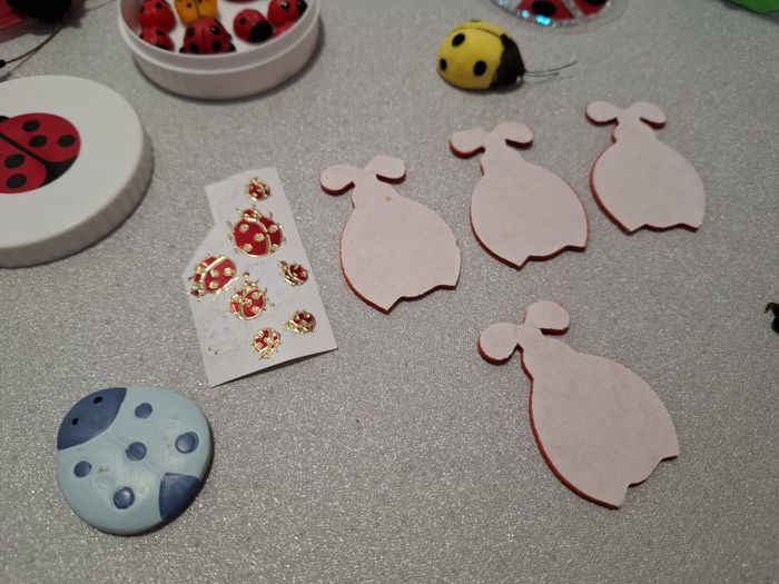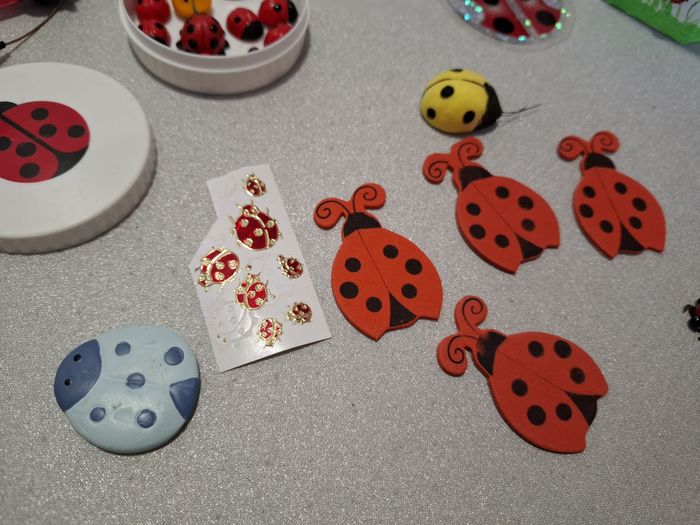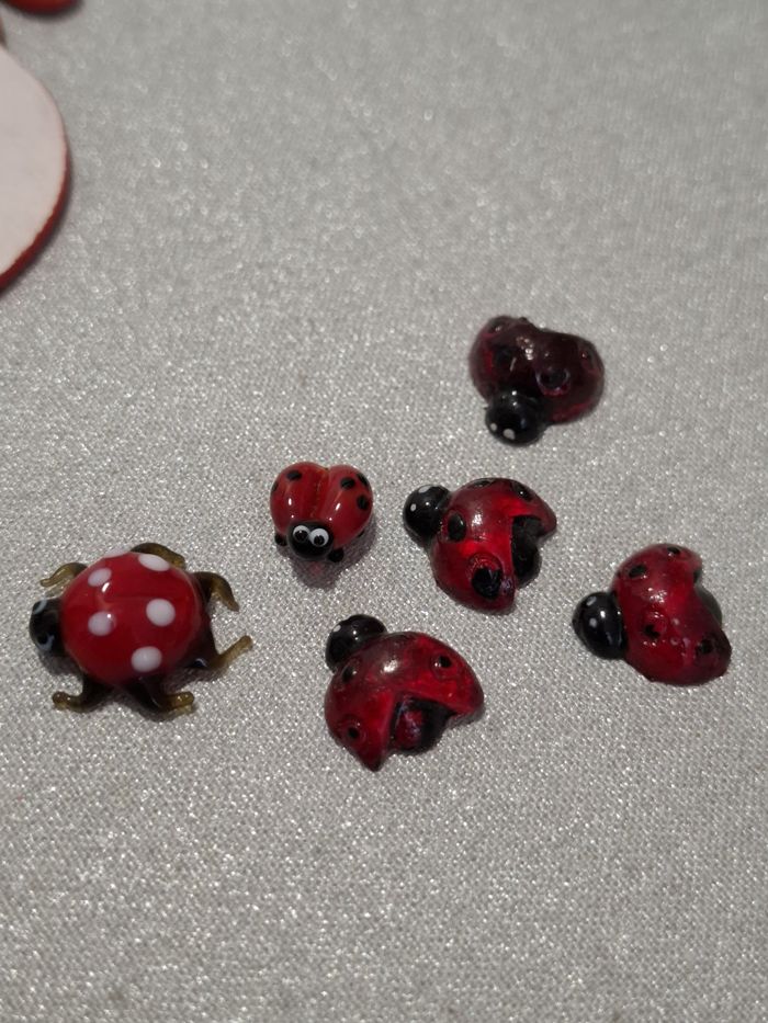 Joli lot coccinelles pour déco/scrap diff formes et matières dont 6 en verre