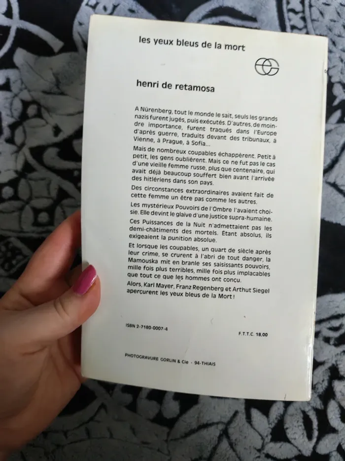 Les yeux bleus de la mort, roman de Henri de Retamosa, tome 12, éd. Galliera, col. Bibliothèque de l'étrange, 1973, 222p., 145g. Livre relié couverture souple, en bon état, quelques légères marques visibles en photos, petite déchirure à la page 100 et le coin de la couverture est un peu marqué, RARE. #lesyeuxbleusdelamort #henrideretamosa #galliera #bibliothequedeletrange