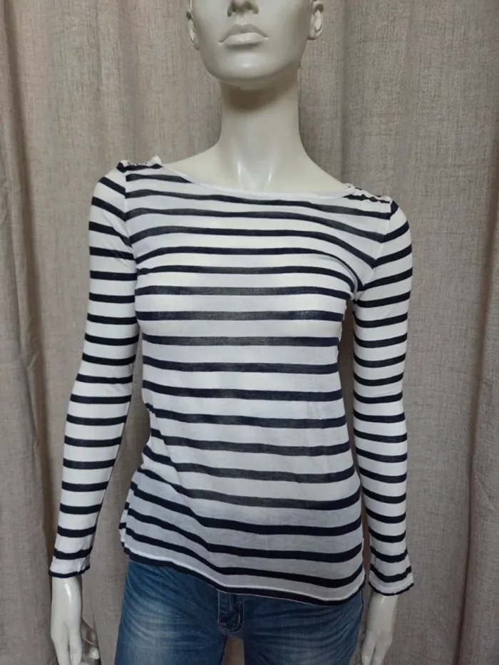 Marinière marine et blanche, coton fin, très bon état, taille S #laetab36