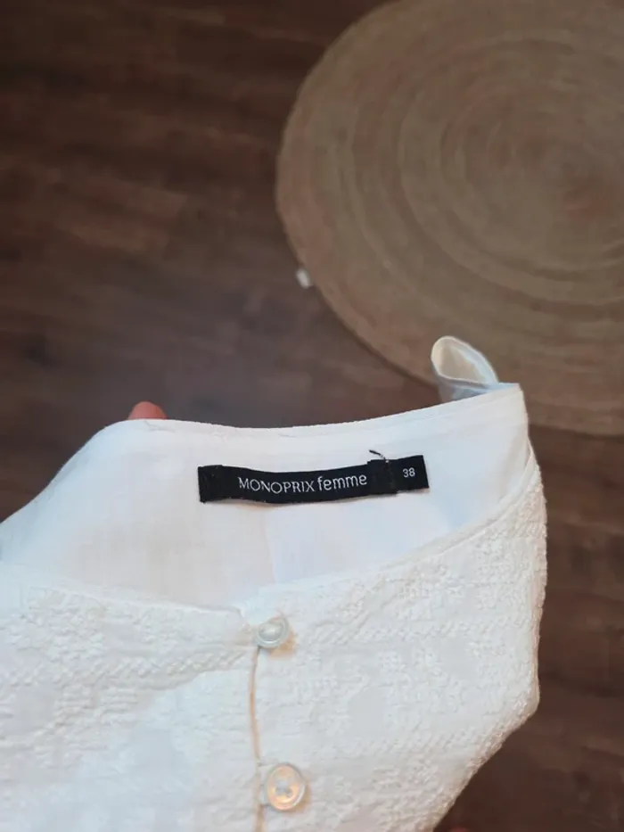Blouse en coton collection été, manches 3/4 Empiècement broderie avant Excellent état #laetab38