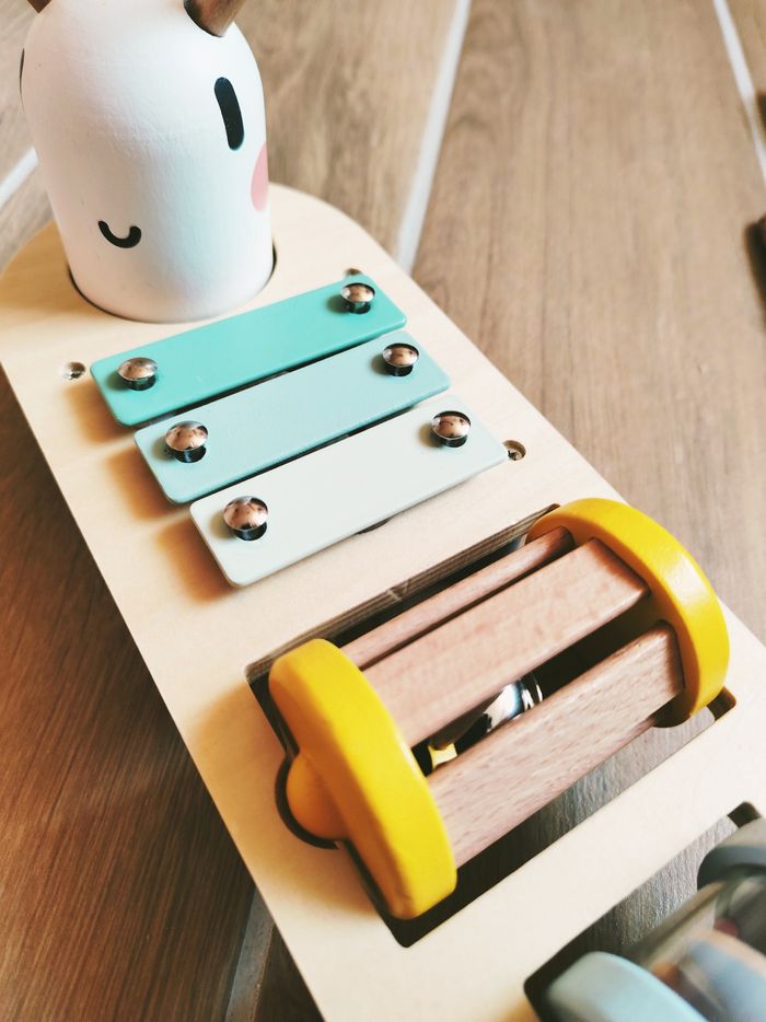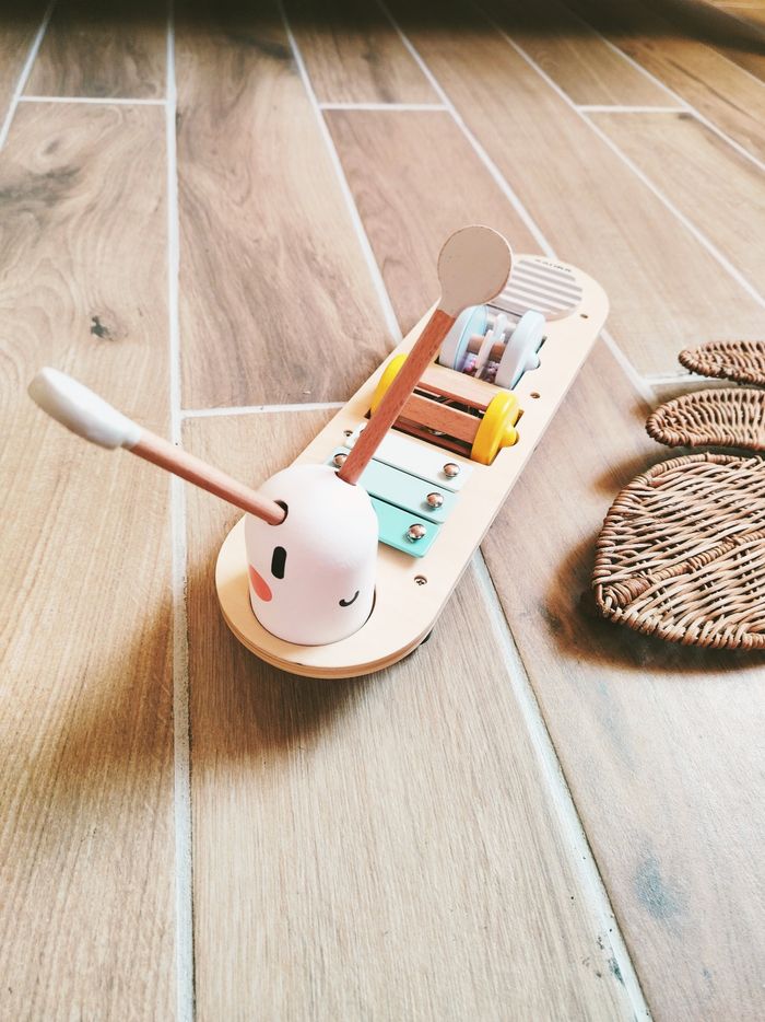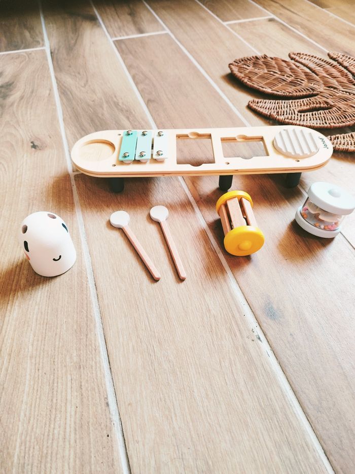 🎀Avec 5 instruments tels que : xylophone, grelot, maracasse, baton de pluie, gratte gratte. Chaque instrument est amovible