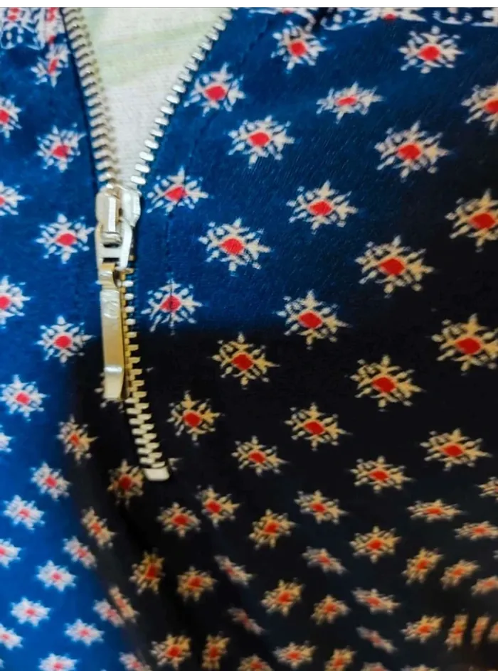 💫 Blouse bleu, rouge et écru, à motifs géométriques 💫 Manches longues, blouse resserrée par un élastique en bas permettant de remonter legerement la blouse et au niveau des poignets 💫 Zip du col à la poitrine 💫 Matière très agréable à porter, légère, fluide, sans repassage 💫 Taille 1 Le mannequin est un S Tour de poitrine : 86 cm environ Tour de taille : 65 cm environ Tour de hanche : 90 cm environ Largeur d'épaule : 38 cm environ 💫 Bien porté, mais pas de défauts visibles Pour mes autres articles femme : #joaltfemme Pensez à retirer les filtres _________ #blousefemme #topfemme #hautfemme #blouse #zip #femme #géométrique #bleu #rouge #mancheslongues #cachecache #sansrepassage #fluide #36 #taille36 #taille1 #casual #printemps #misaison #blousemotif #blousemotif36 #blusa #blusamujer #blusamujer36 #camiseta #camisetamujer #camisetamujer36 #blousewoman #blousewoman36 #blusamulher #blusamulher36 #camicetta